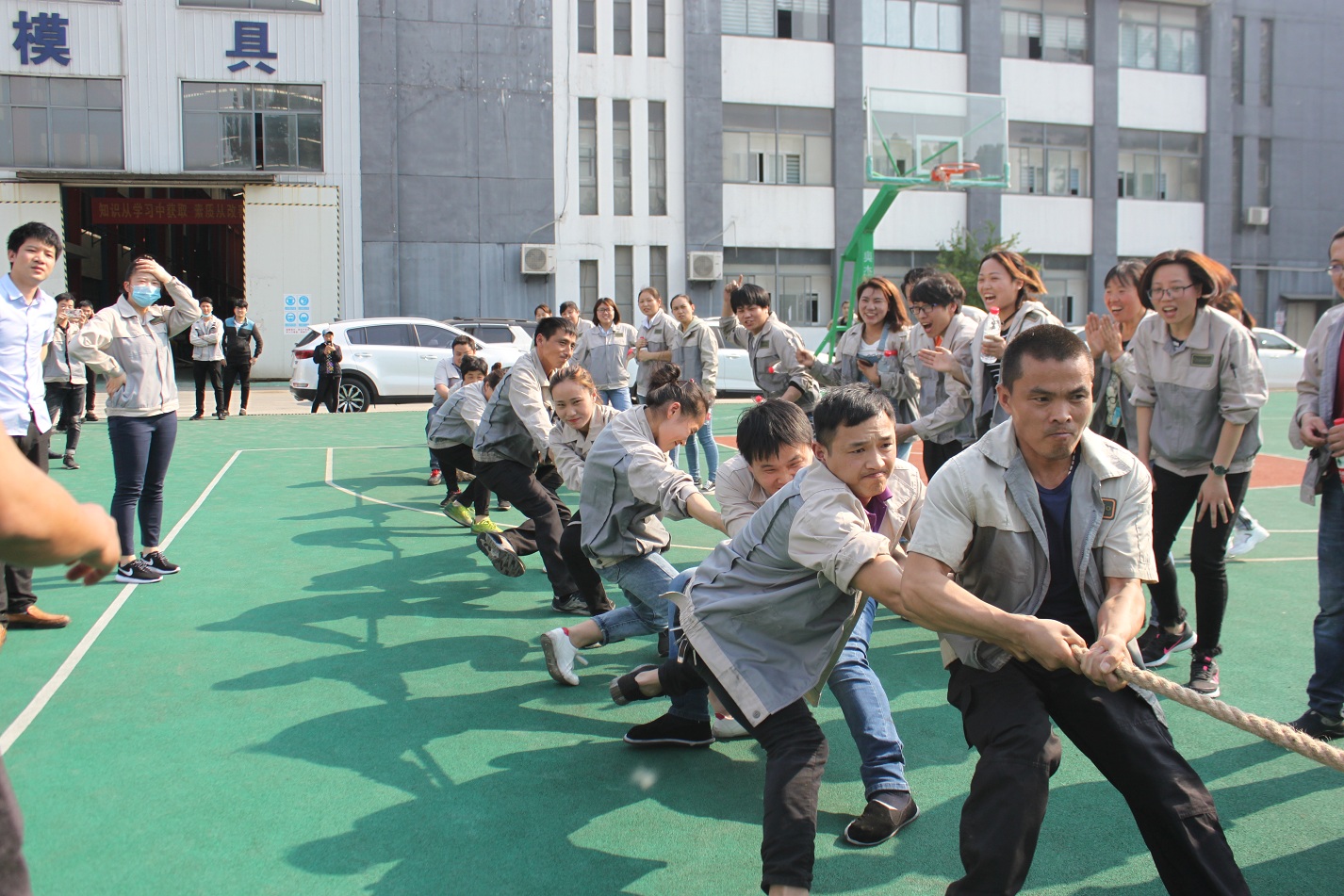 首先進(jìn)行的活動是拔河,參與活動的共有七支隊(duì)伍,分別是:鈑金事業(yè)部一戰(zhàn)隊(duì)、鈑金事業(yè)部二戰(zhàn)隊(duì)、彩晶事業(yè)部戰(zhàn)隊(duì)、模具事業(yè)部戰(zhàn)隊(duì)、鈑金加工部戰(zhàn)隊(duì)、惠爾科戰(zhàn)隊(duì)、職能部門戰(zhàn)隊(duì),每個戰(zhàn)隊(duì)分別由5男5女組成,共10人。